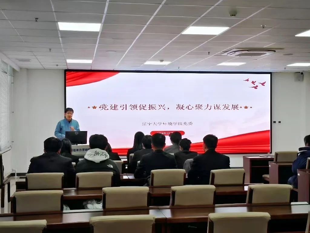 接着,双方在辽宁大学理工大楼会议室就支部建设工作展开交流,交换意见。万霖就环境学院的支部建设工作进行发言,围绕支部建设、理论学习、党纪学习教育、全面从严治党、履行意识形态工作、师德师风建设以及学生培养七个方面向信息学院师生党员代表进行分享。