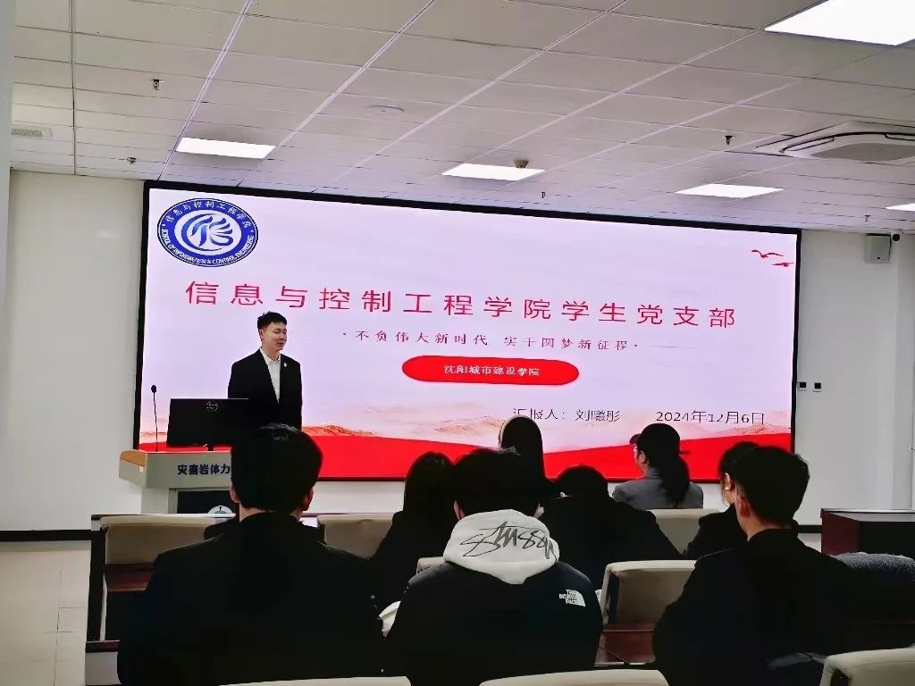太阳成集团tyc33455ccww学生党员刘曦彤就信息学院学生党支部的工作进行汇报,他围绕学生党支部基本情况、支部建设、工作总结和未来展望四个部分展开叙述,与大家分享了学院党建活动开展情况。