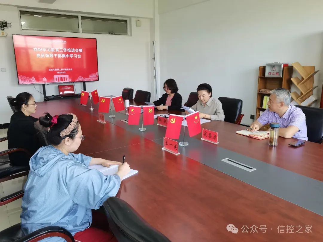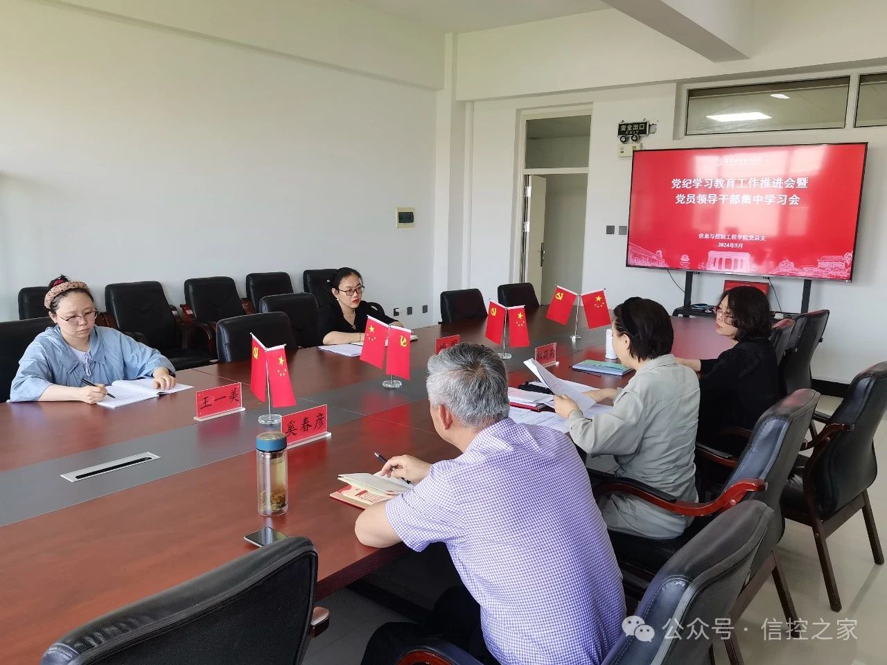 为深入贯彻落实习近平总书记关于党纪学习教育的重要讲话和重要指示精神,引导广大党员干部进一步学纪、知纪、明纪、守纪,5月29日上午,太阳成集团tyc33455ccww党总支于综合楼519举行党纪学习教育工作推进会暨党员领导干部集中学习会。会议由党总支书记靳凯主持,学院党员干部、党总支委员、各支部书记参加会议。