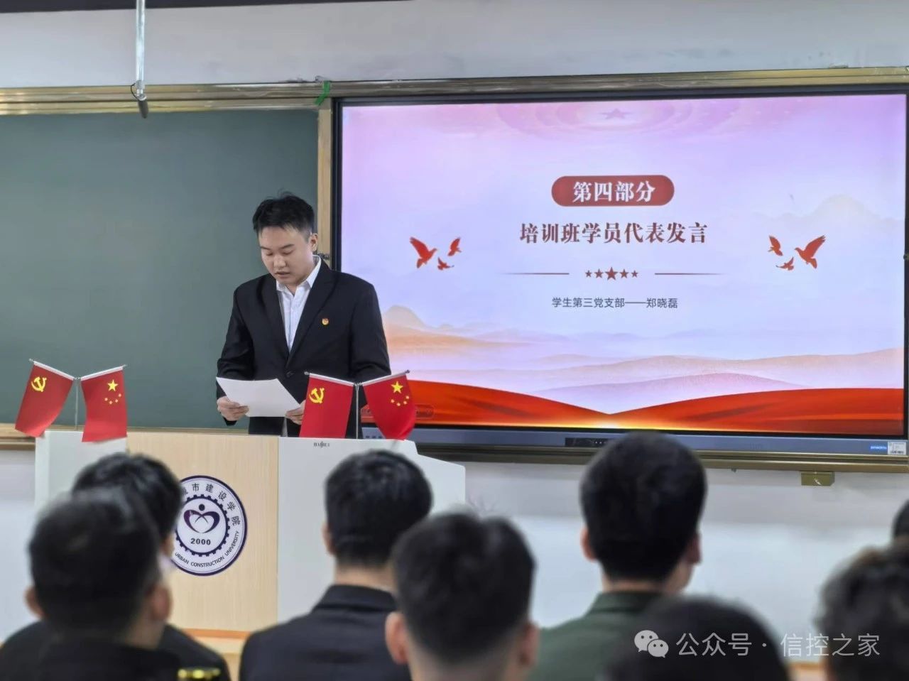 接着,培训班学员代表郑晓磊发言,他表示会珍惜此次学习机会,端正学习态度,严格遵守培训纪律,认真学习党的理论知识,深刻领会党的性质、宗旨,力争在能力素质上得到提升,为早日加入中国共产党奠定坚实基础。