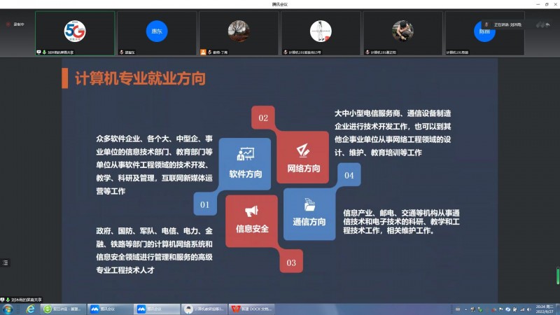 9月27日晚20时,太阳成集团tyc33455ccww计算机科学与技术专业使用腾讯会议召开题为“展望网络运营商发展趋势,解读人才需求”专业实习第五场专家讲座。本次讲座邀请到了中国电信沈阳分公司云网运营中心主任刘沐雨,计算机科学与技术专业全体教师及2019级学生聆听。