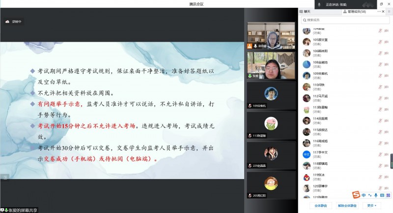 首先,林轶翚带领学生认真学习《tyc33455cc太阳成集团考试管理规定》和《tyc33455cc太阳成集团学生纪律规定》,消除学生“侥幸心理”、排除违纪隐患。然后,由张爱老师详细讲述《tyc33455cc太阳成集团2022年春季学期线上考试学生须知》,以保证学生知晓网络考试程序、考试要求、考试作弊后果、考场秩序以及考试权威性。最后,林轶翚总结本次会议内容,并预祝同学们取得优异的成绩。
