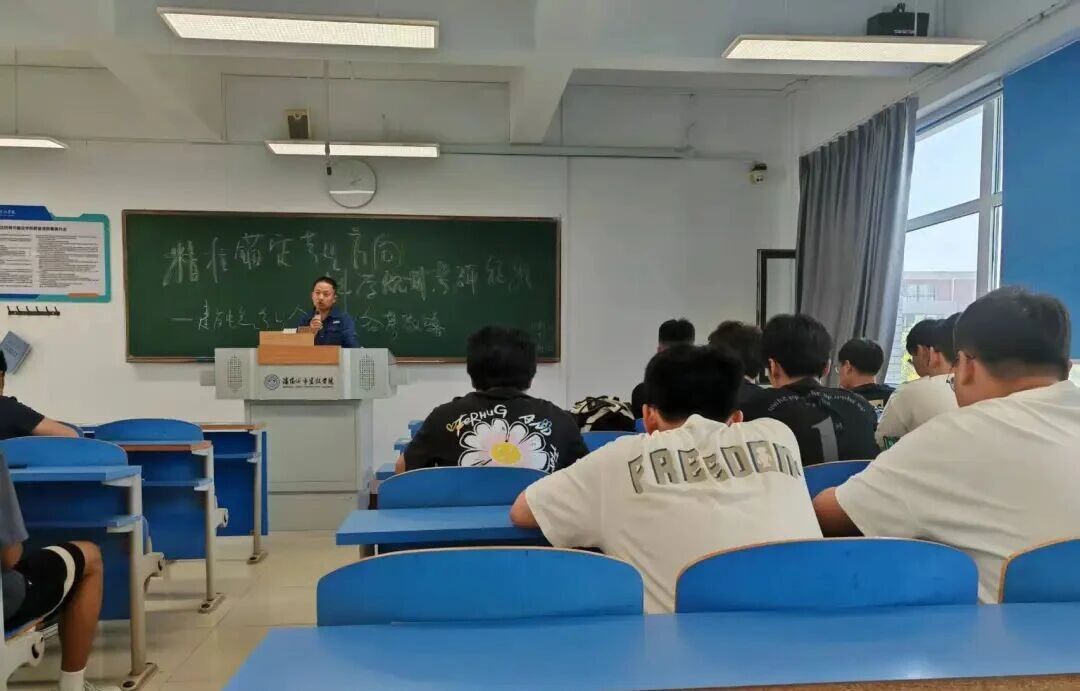 随后,学院邀请的考研机构聚焦“如何成功逆袭之考研全程规划”展开专项动员。机构代表郭老师从考研形势与备考方法两个方面为学生助力:一方面,通过梳理近年报考数据、分数线趋势与热门专业方向,让学生清晰了解“当前考研考什么、竞争如何”,避免盲目备考;另一方面,针对公共课复习、院校选择、调剂准备等学生关心的问题,分享实用策略与避坑技巧,帮助大家建立清晰的备考规划。